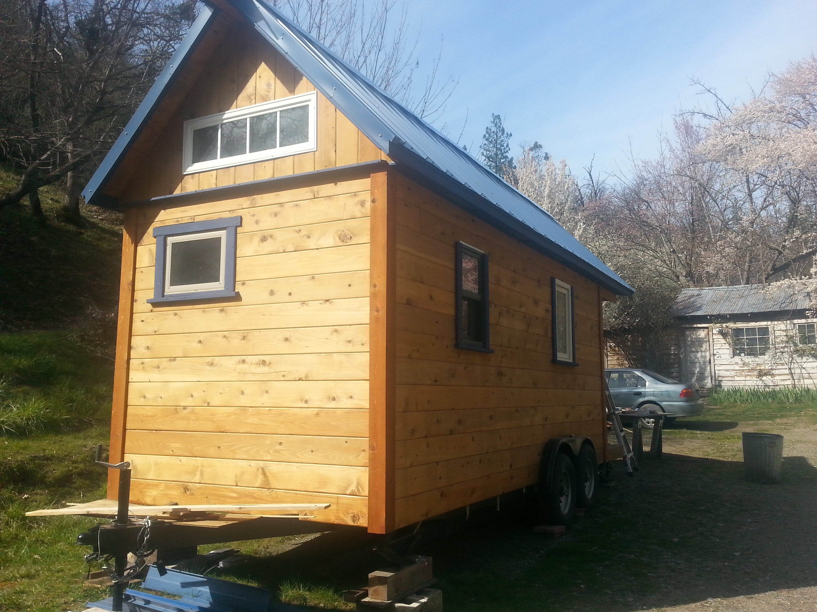 Ask my parents, ask my friends, ask Sarah… I always do things the hard way. I’m not sure why, I’ve been told it’s because I’m a Capricorn(?), but I’ve recently been recognizing it when it happens. Por ejemplo, I can’t just make coffee in the morning, I have to preheat everything (Bialetti, Mug, 1/2 & 1/2), find the perfect blend of coffee/chicory/cardamom (5:1:dash), then watch everything fastidiously while Sarah’s ginger tea (finely chopped) comes to a boil. The tiny house, too, has proved to be an excellent mirror to this particularly pervasive character trait. I couldn’t just slap up exterior window trim and caulk the heck out of it. Too easy. I had to devise a clever interlocking system that would guarantee (so far) water-proofness. While I DO think it’s a good system, It doesn’t work any better than the easy way, looks about the same, and complicated things greatly when I realized it’s hard to tuck the same piece of siding under two sides of a window. Oh, and btw, I caulked the heck out of it. Here are some pictures.